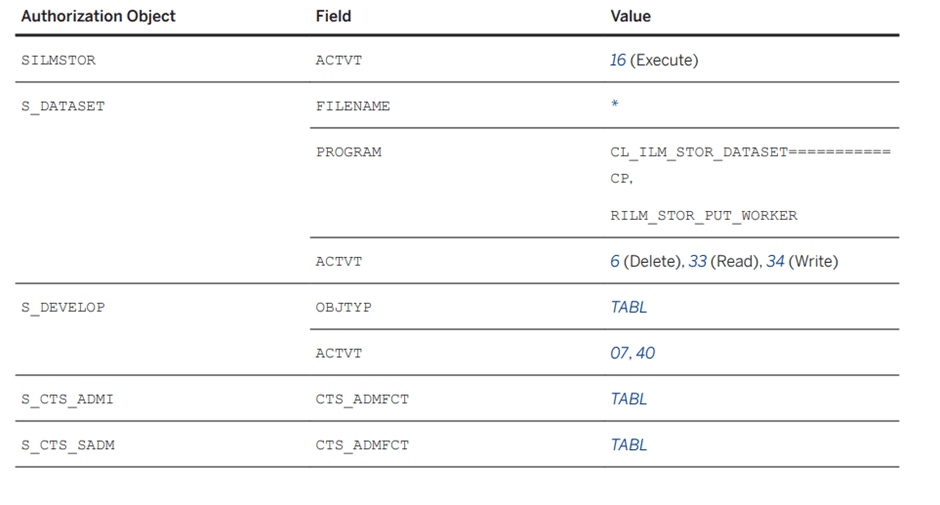Required authorisations for configuring ILM Store in HANA