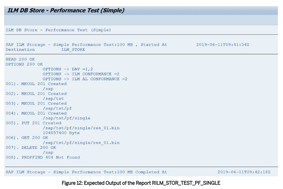 Additionally, to check various data constellations and operations defined in the BC-ILM 3.1 specifications, you can use the report RILM_STOR_TEST_AT. Here again, provide the created RFC destination and then execute the command.